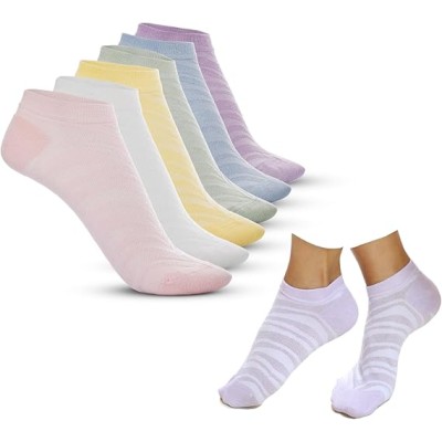 Aesthetic Pattern Ankle Socks for Women - Soft & Thin Bamboo Rayon Socks for Women Low Cut - 6 Pairs